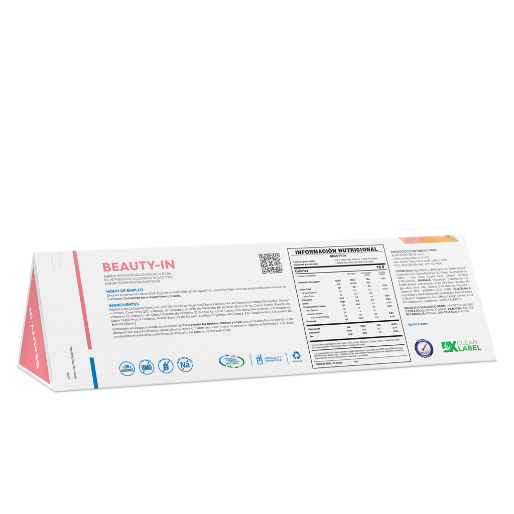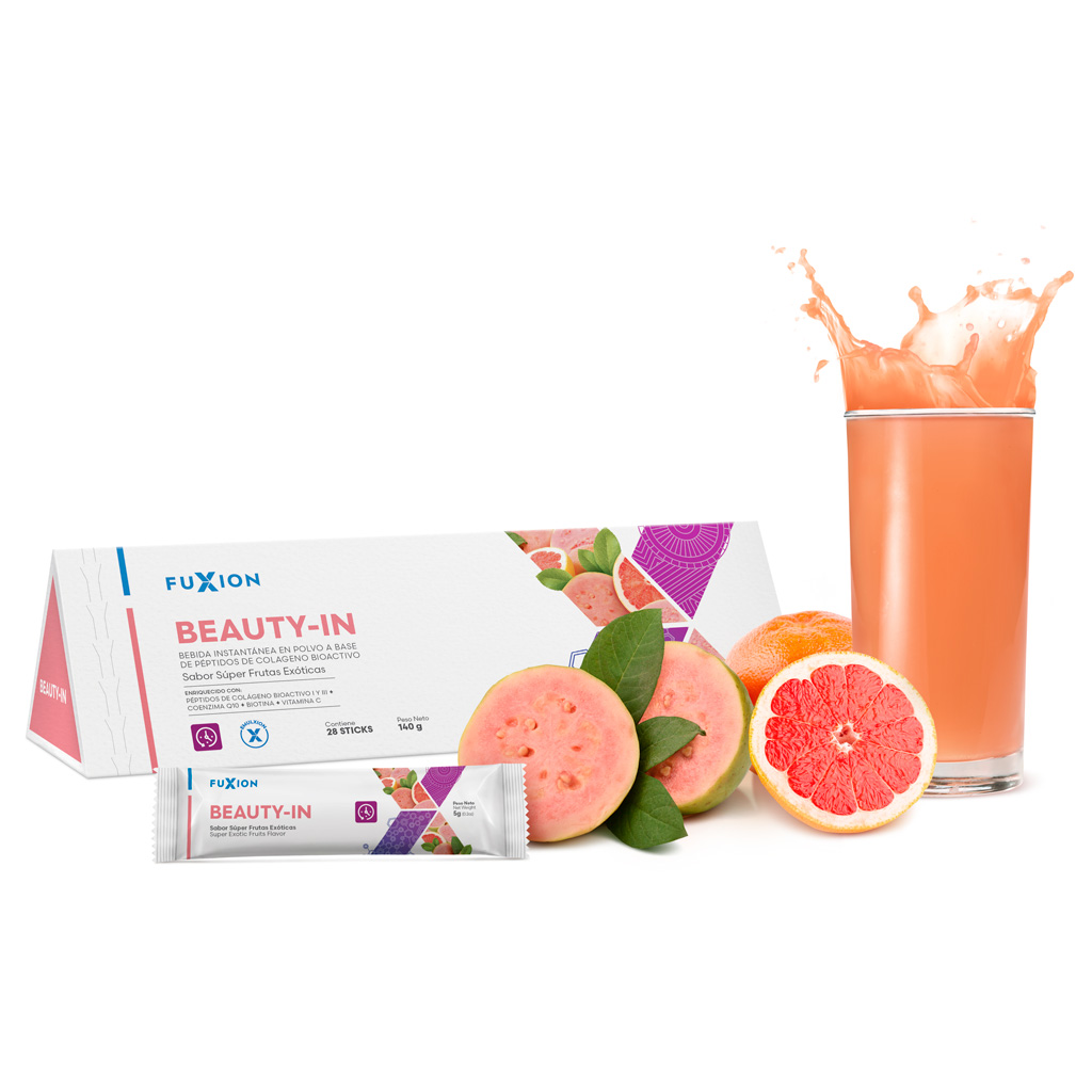 Delicioso refresco nutritivo de guayaba con una potente combinación de péptidos de colágeno bioactivo que nutren tu piel desde adentro, para que luzca radiante y juvenil, por más tiempo. Beauty-In utiliza colágeno optimizado (cuatro veces más potente que el colágeno convencional), que estimula a las células de la piel a producir más colágeno y elastina, trabajando en sinergia con los antioxidantes y vitaminas presentes en su formulación, para una piel rejuvenecida.