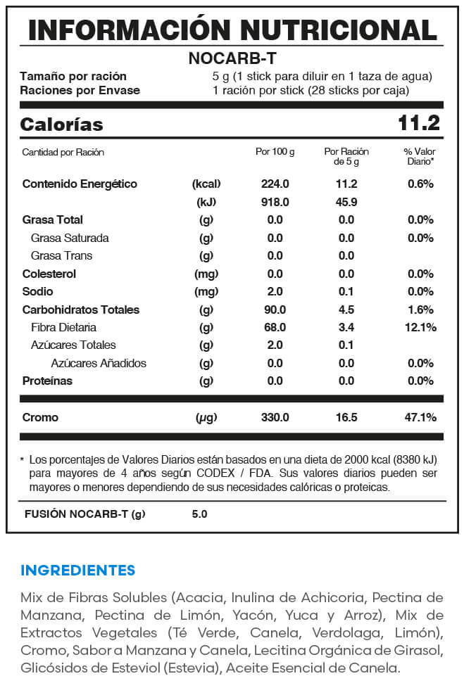 FIBRAS SOLUBLES (FIBRA DE YACÓN + FIBRA DE ACACIA + INULINA DE ACHICORIA + PECTINA DE MANZANA) + VERDOLAGA + CANELA + TÉ VERDE + CROMO